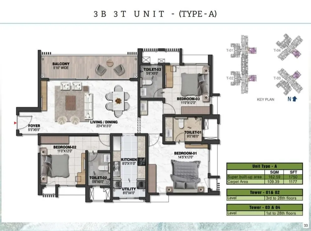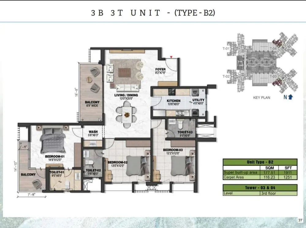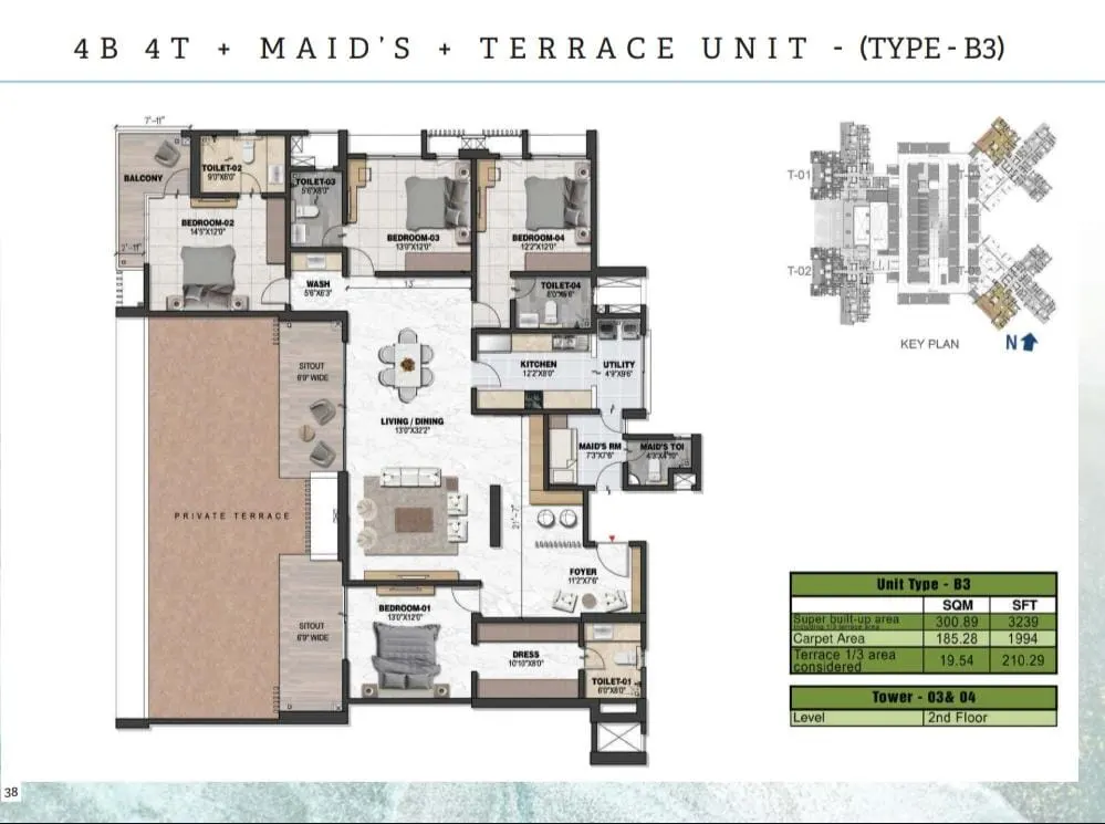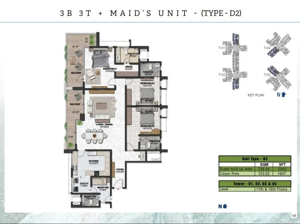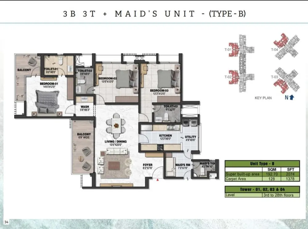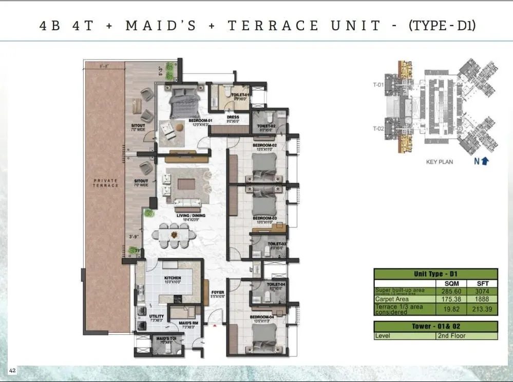 Prestige Ocean Pearl in Kozhikode offers a choice of premium residences with stunning views and spacious layouts. Homebuyers can select from Direct Beach View, Side Beach View, or Garden/City View apartments, with pricing tailored to the view. The Direct Sea View apartments in Tower 1 & 2 start from ₹9,000 per sq.ft., while Side Beach View homes in Tower 3 & 4 start from ₹8,300 per sq.ft., and City/Garden View apartments start from ₹7,750 per sq.ft. across all towers. Typical floor plans include 3 BHK (1750 sq.ft.), 3 BHK + Maid (2074 sq.ft.), and 4 BHK + Maid (2861 sq.ft.), with all maid-inclusive layouts positioned to face the beach. With thoughtfully designed spaces, panoramic views, and luxury finishes, Prestige Ocean Pearl West Hill Beach Road sets a new benchmark for coastal living in Calicut.